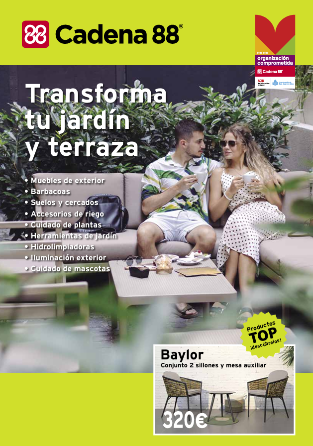 Ya está disponible en nuestra web y en nuestras tiendas el catálogo jardín de Cadena 88. Los precios indicados en el mismo serán válidos del 7 de marzo al 1 de septiembre de 2025. Descárgatelo o recógelo en nuestras tiendas.